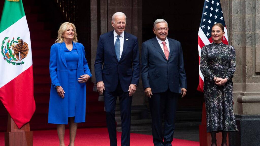 El primer acercamiento ocurrió en las puertas de honor del recinto. Los mandatarios estaban acompañados por sus respectivas esposas, del lado de López Obrador, Beatriz Gutíerrez Müller, mientras que Jill Biden acompañaba al presidente estadounidense.