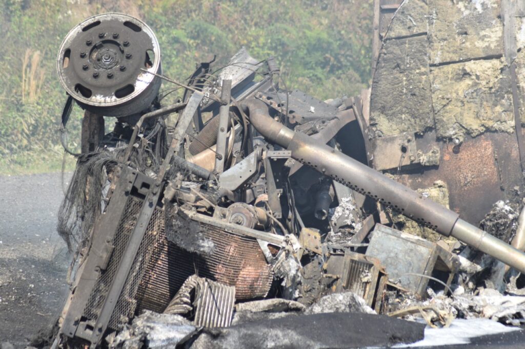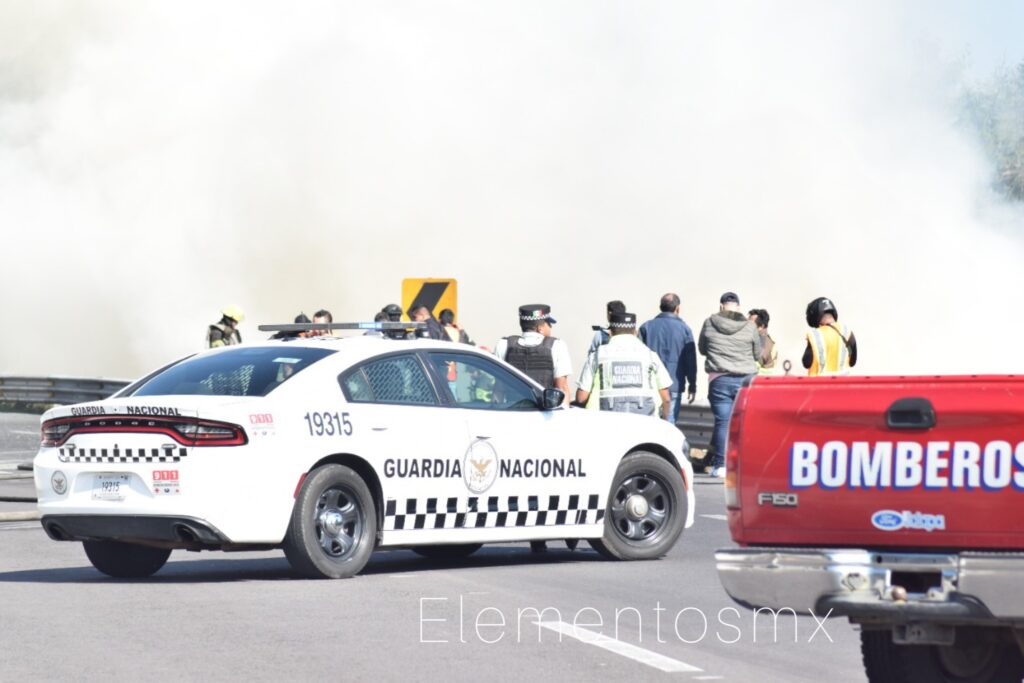 • Las corporaciones sofocaron el incendio y atendieron el derrame de diésel que se fue por una alcantarilla y llegó al área verde ubicada a un costado de la vialidad