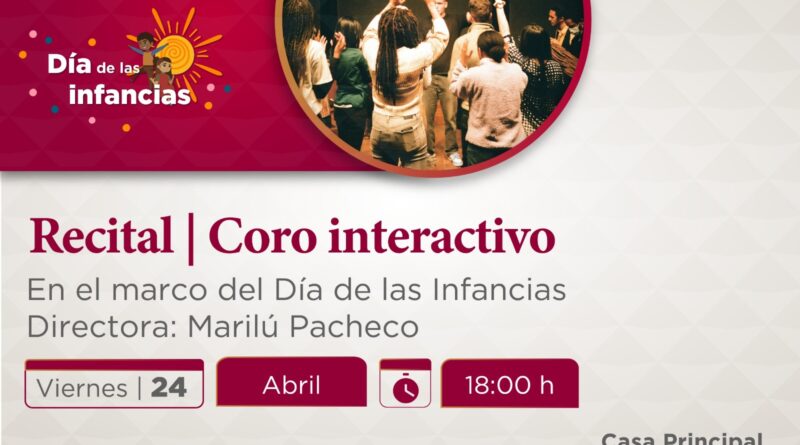 Xalapa, Ver., martes 21 de abril de 2026.- En el marco del Día de las Infancias, la Secretaría de Cultura de Veracruz (SECVER) invita al Recital Coro Interactivo, a cargo de Marilú Pacheco, el viernes 24 de abril a las 18:00 horas, en el Centro Cultural Casa Principal, en la ciudad de Veracruz. La entrada es gratuita.