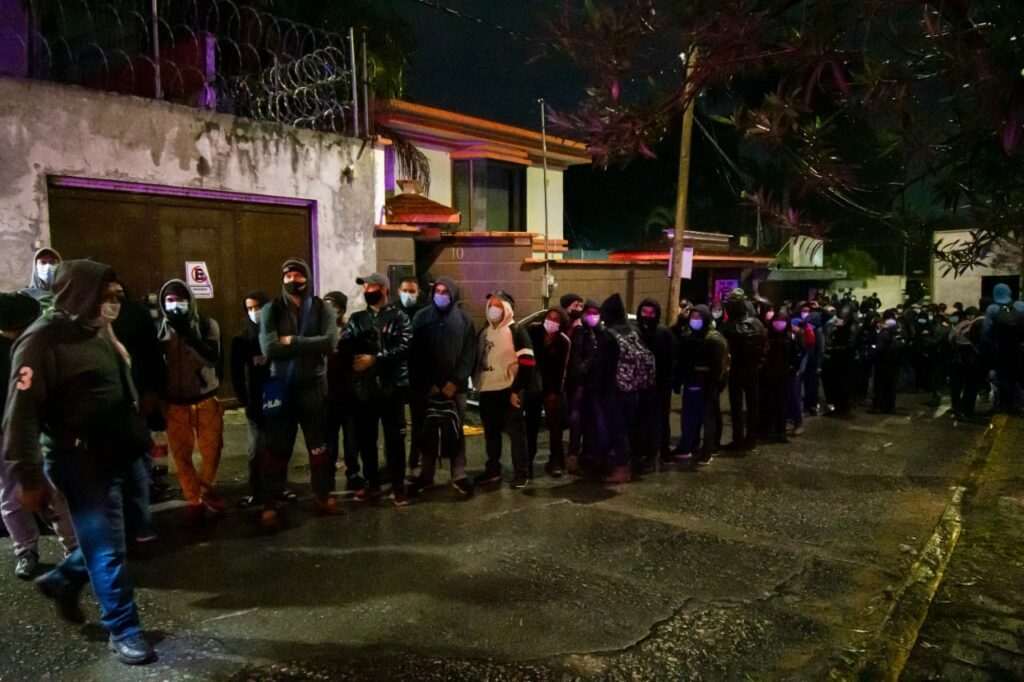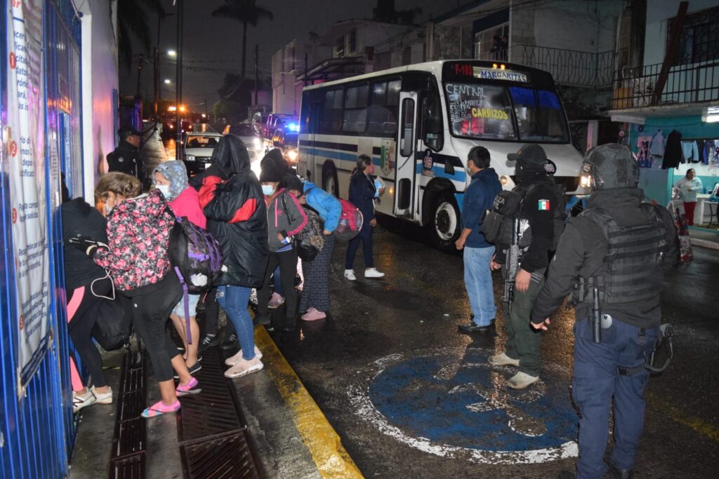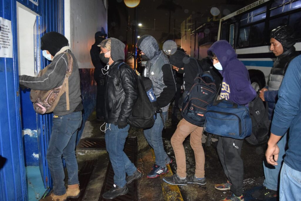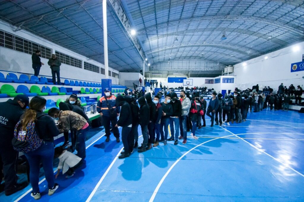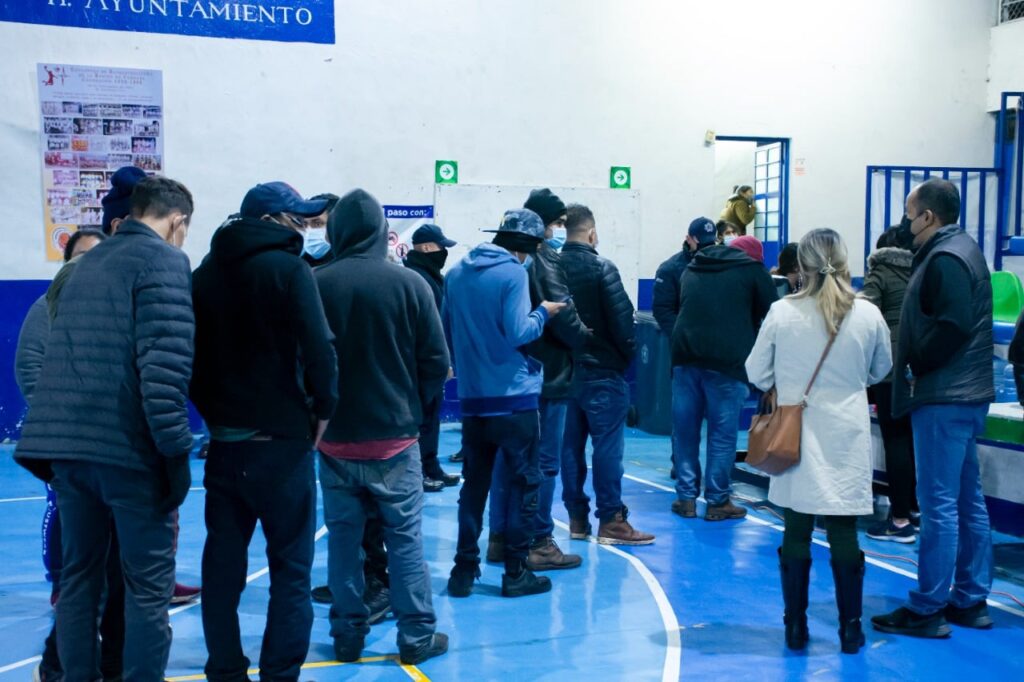 Personal de la Dirección de Protección Ciudadana y Movilidad, de la dirección de Desarrollo Social, Educación, Cultura y Deporte, Atención Ciudadana, apoyaron para brindar atención a los migrantes, así como diseñar la logística para trasladarlos a salvo al gimnasio municipal de San José, donde se les brindó alimentos, bebidas calientes y se inició su revisión médica.