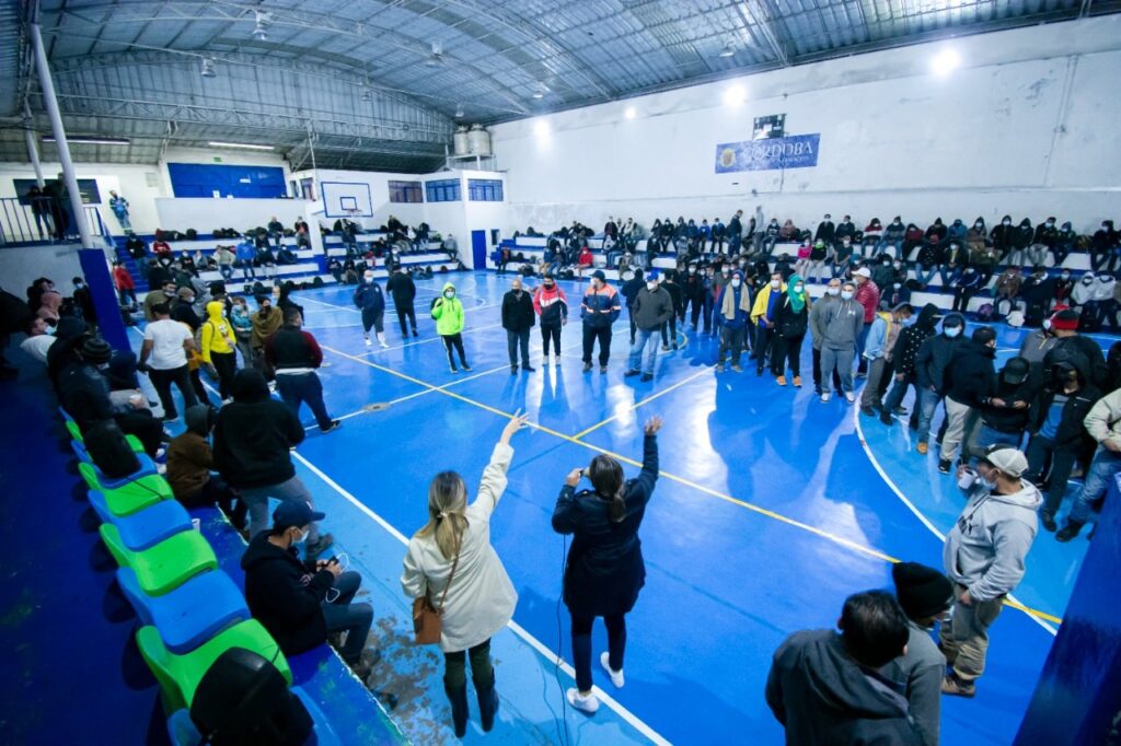 Directivos y personal de las distintas área del Ayuntamiento se sumaron para repartir alimentos y cobertores, así como cuidar el filtro sanitario a la entrada del gimnasio, donde los migrantes permanecerán hasta que personal del Instituto de Migración defina su situación.
