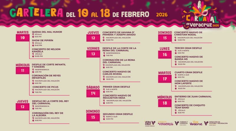 Esta es la cartelera oficial del Carnaval de Veracruz 2026: