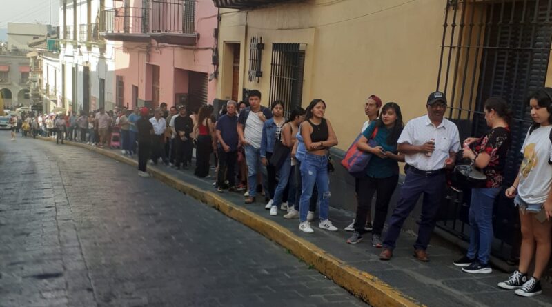 En menos de media hora, el electorado logró enormes filas para participar en la elección del 2024, tan solo en las casillas especiales ubicadas en la zona centro, en los bajos de los Palacios Municipal de Xalapa y de Gobierno, las filas rodean las manzanas y en algunos casos hasta van por una segunda vuelta.