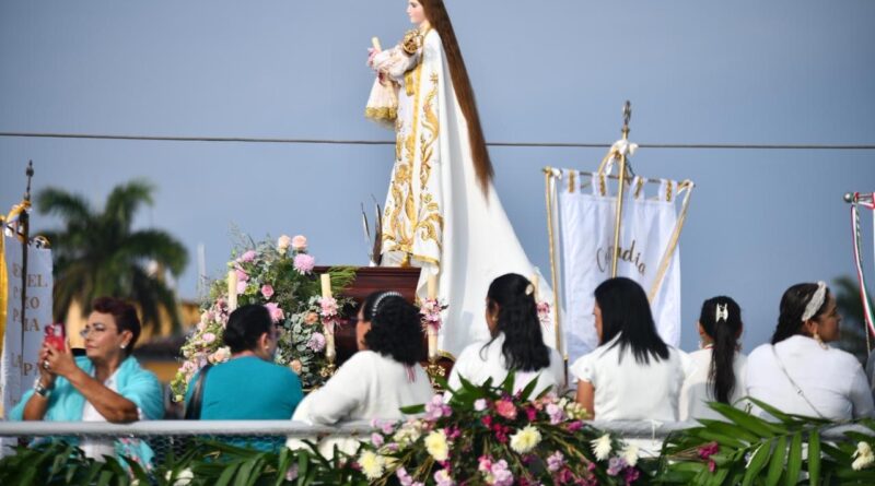 Leer más>Fieles y visitantes celebraron con fe y cantos para pedir por una pesca abundante y bendecir al río. Tlacotalpan, Ver., lunes 02