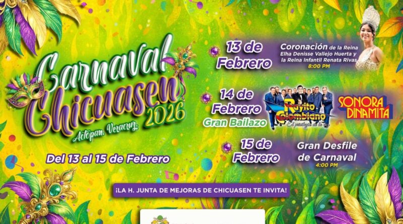 Leer másKarla MéndezXalapa, Ver.- Del 13 al 15 de febrero se llevará a cabo el Carnaval de Chicuasen en Actopan, con