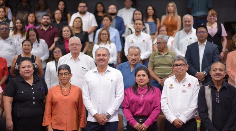 En el auditorio Sebastián Lerdo de Tejada del Palacio Legislativo se realizó este acto el cual registró la asistencia del rector y exrectores de esta casa de estudios y miembros del Sindicato Nacional de Trabajadores de la Educación (SNTE).