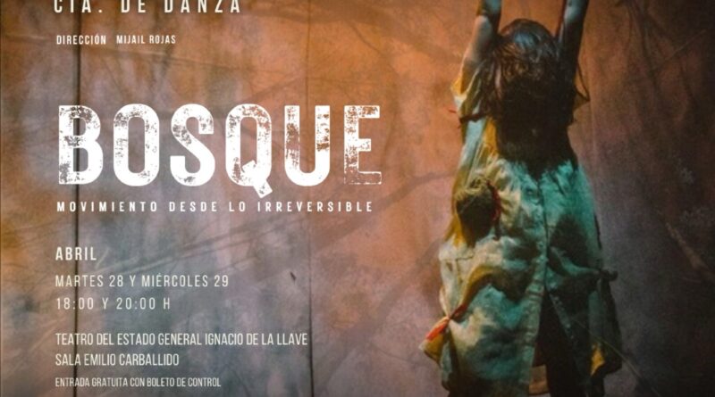 Xalapa, Ver., sábado 25 de abril de 2026.- La Secretaría de Cultura de Veracruz invita a disfrutar de las funciones de Bosque, Movimiento desde lo irreversible, bajo la dirección de Mijail Rojas, que se realizarán los días 28 y 29 de abril, en el Teatro del Estado General Ignacio de la Llave, en el marco del Día Internacional de la Danza. El acceso es gratuito con boleto de control.