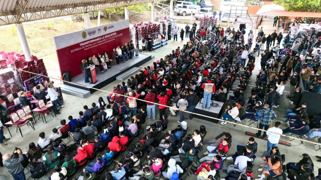 Acompañada por la secretaria de Educación de Veracruz, Claudia Tello Espinosa, subrayó que su administración mantiene un enfoque humanista y cercano a la población, “todas y todos se van a preparar y van a salir adelante, porque ese es el futuro que queremos para nuestras niñas y niños. Tras la contingencia, muchos materiales escolares se dañaron o se perdieron, por lo que tenemos la responsabilidad de restituirlos y garantizar que nadie se quede atrás”.