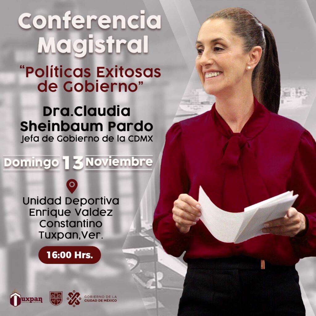 En un comunicado el Ayuntamiento de Tuxpan dijo que todo está listo para recibir a la Jefa de Gobierno de la Ciudad de México, Claudia Sheinbaum Pardo, quien dictará la conferencia magistral “Políticas Exitosas de Gobierno”, mañana domingo, a las 16:00 horas, en la Unidad Deportiva.