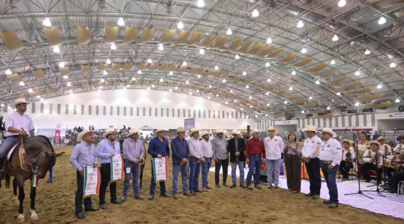 En este marco, encabezó la entrega de banderines a las ganadoras del Campeonato Nacional de la raza Iberoamericano, en la categoría hembras, organizado por la Asociación de Criadores del Caballo Iberoamericano, con ejemplares provenientes del municipio de Jesús Carranza, que se distinguieron por la calidad genética y el trabajo de los criadores.