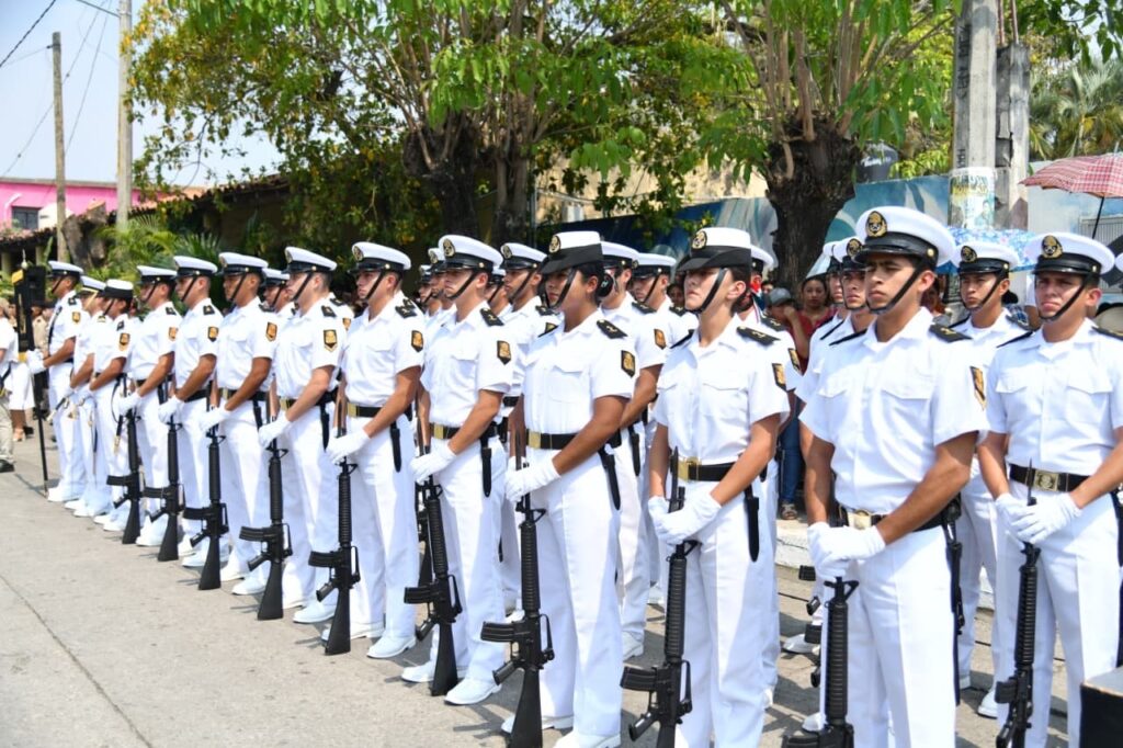 En representación de la gobernadora Rocío Nahle García, el secretario de Gobierno, Ricardo Ahued Bardahuil, encabezó la ceremonia y afirmó que no es sólo un acto protocolario, “es reafirmar los valores de lealtad, sacrificio y dignidad que siguen vigentes en nuestra sociedad”.