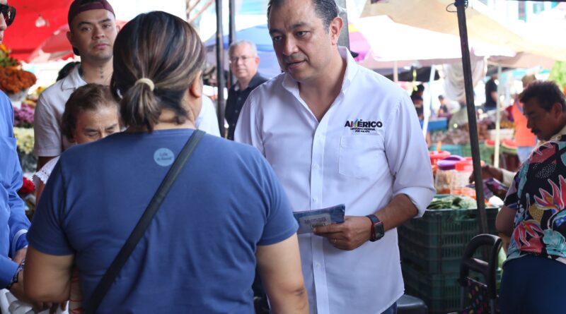 Este jueves, el candidato realizó un recorrido por el mercado San José, en donde saludó y escuchó a los locatarios, además de presentarles sus propuestas que como legislador hará en la Cámara de Diputados.