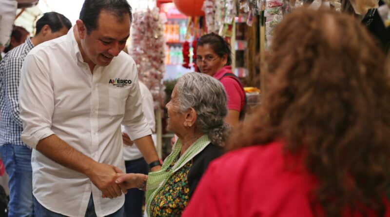 Este martes, el candidato, acompañado por decenas de personas, recorrió el popular mercado Adoquín de la colonia Rafael Lucio para platicar con la gente y darles a conocer su hoja de servicio, su trabajo y las iniciativas que presentará en el Congreso de la Unión.