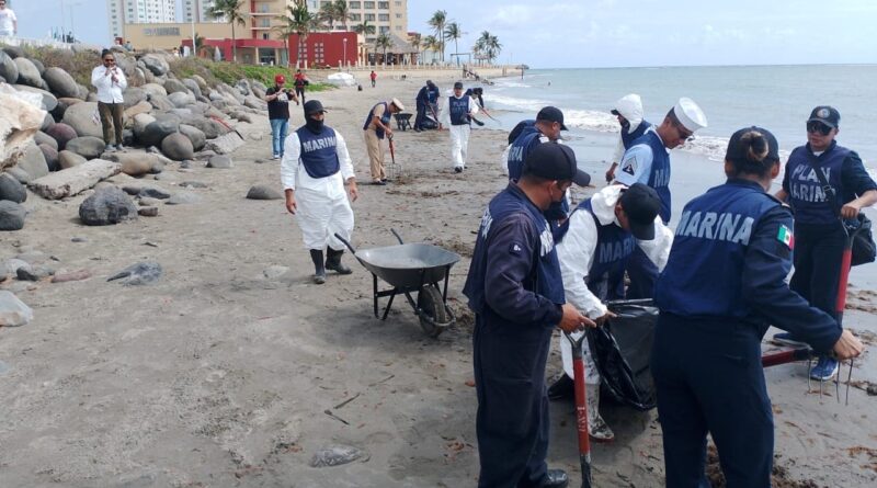 Con lo anterior, Marina ha realizado recorridos marítimos, terrestres y aéreos de vigilancia ambiental, para el monitoreo y detección de manchas o recales de hidrocarburo; ha atendido más de 223 kilómetros de playas, incluyendo la desembocadura del río Papaloapan y retirado más de 430 toneladas de contaminantes de la superficie marítima y costas.