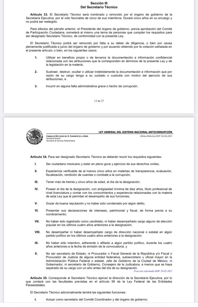 De acuerdo a la sección III de la Ley General del Sistema Nacional Anticorrupción en su artículo 33 dice: