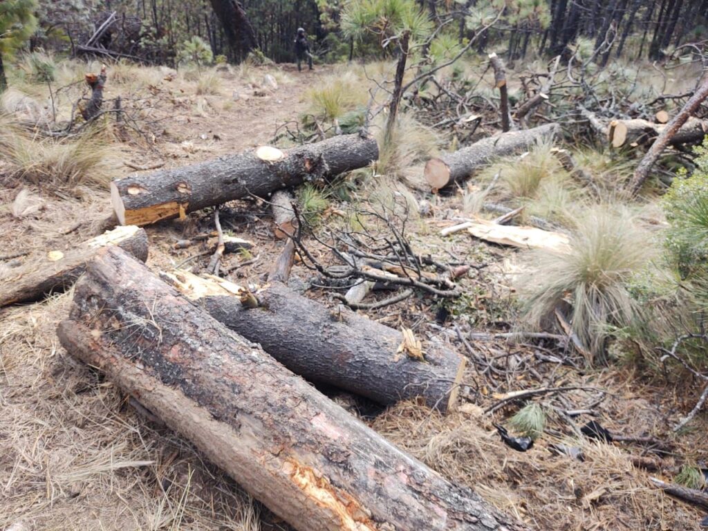 Durante recorridos de vigilancia, los efectivos estatales detuvieron en flagrancia a los cuatro implicados, quienes talaban árboles de manera ilegal en el área natural protegida Parque Nacional Cofre de Perote.