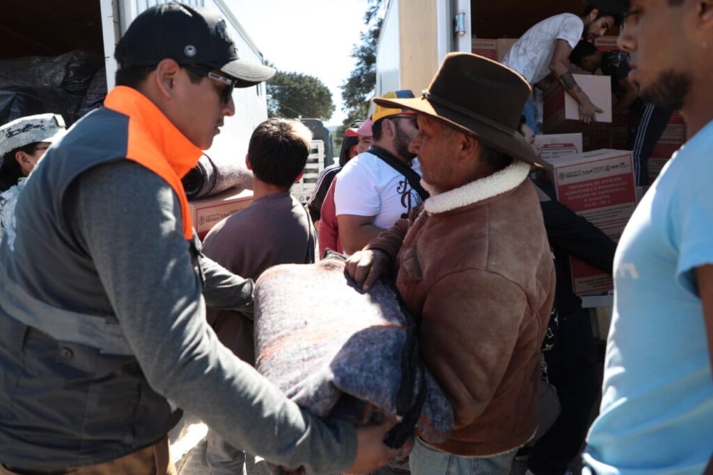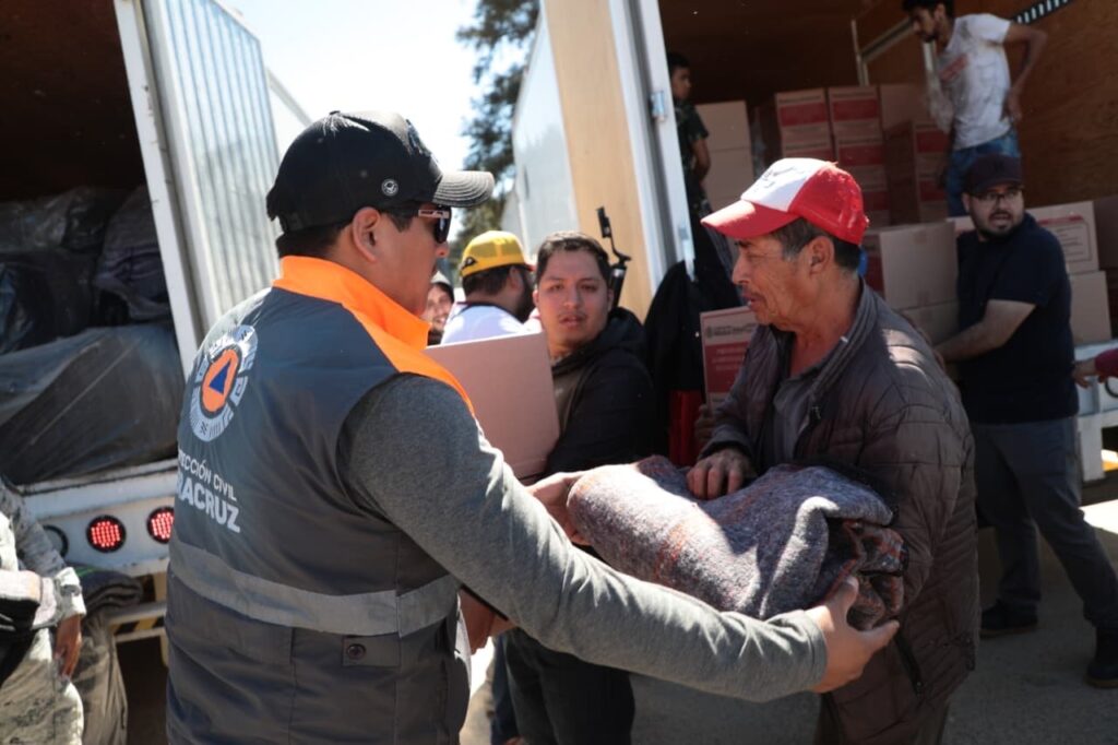 La Caravana Abrigando Corazones recorre la región Huasteca para atender a familias, el viernes brindó apoyo en Zontecomatlán e Ixhuatlán de Madero, con la distribución de mil 870 despensas y 3 mil 960 cobijas; el sábado continuaron las acciones en Ixhuatlán de Madero, donde se entregaron mil 651 despensas y 3 mil 400 cobijas; y el domingo la Caravana llegó a Tlachichilco, con la entrega de mil 323 insumos alimentarios y 2 mil 800 cobijas.
