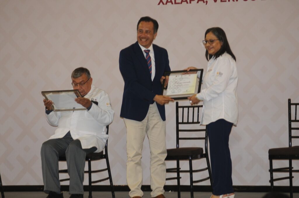 Xalapa, Ver.- Por su gran esfuerzo y dedicación a la prevención y control de enfermedades, el Gobierno de Veracruz reconoció a 997 trabajadores que cumplen 45, 50, 55 y 60 años dentro de la Secretaría de Salud; “son ustedes la mano humanista que ayuda a disminuir el dolor por algún padecimiento”, afirmó el gobernador Cuitláhuac García Jiménez.