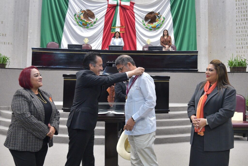 En el Recinto Oficial de Sesiones, la presidenta de la Mesa Directiva de la LXVI Legislatura, diputada Adriana Esther Martínez Sánchez; el gobernador del estado, ingeniero Cuitláhuac García Jiménez, y la presidenta del Poder Judicial, magistrada Lisbeth Aurelia Jiménez Aguirre, encabezaron la entrega de esta condecoración, prevista en la Ley de Premios del estado.