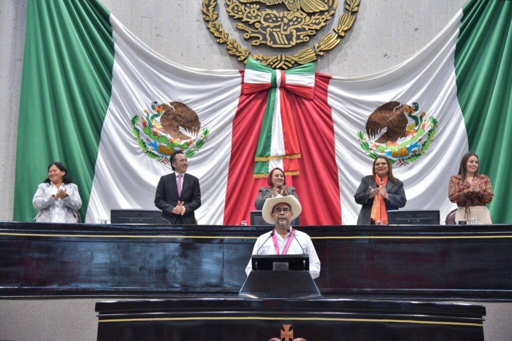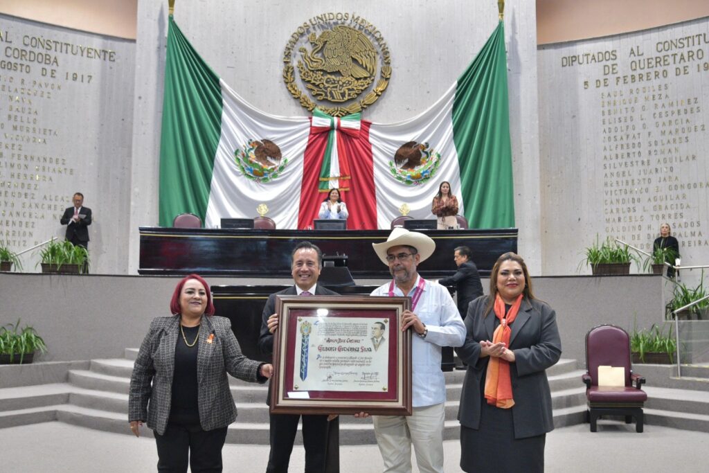 Xalapa, Ver.- Como reconocimiento a su trayectoria artística y a la promoción que ha hecho del son jarocho por el mundo durante más de cuatro décadas, los tres poderes del estado entregaron en sesión solemne la medalla y diploma Adolfo Ruiz Cortines, edición 2023, al ciudadano Gilberto Gutiérrez Silva.