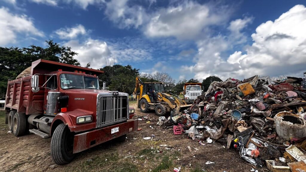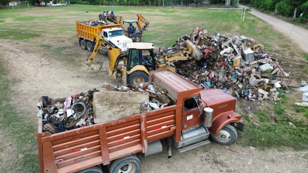 Este domingo, Ayuntamiento de Tuxpan trabajó en la limpieza y retiro de toneladas de basura en comunidades afectadas por la inundación