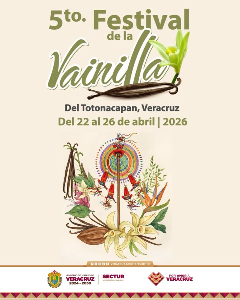 Xalapa, Ver., viernes 17 de abril de 2026.– La Secretaría de Turismo invita a disfrutar del 5.º Festival de la Vainilla del Totonacapan, que se llevará a cabo del 22 al 26 de abril en Papantla, Poza Rica, San Rafael y Gutiérrez Zamora, con una programación cultural, gastronómica y académica que reconoce el valor de este producto emblemático de Veracruz.