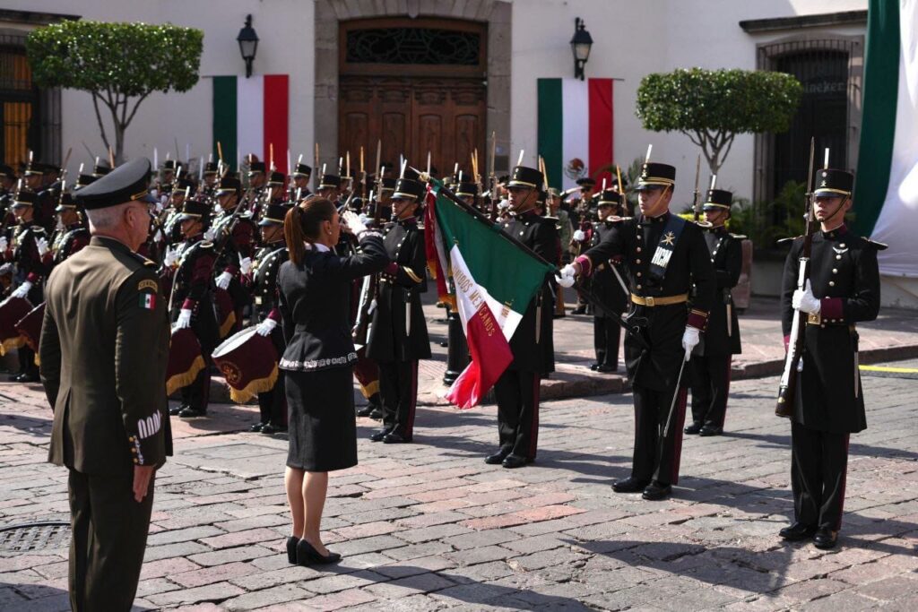 En su mensaje, la Presidenta subrayó que la Constitución de 1917 continúa siendo una expresión viva de la lucha del pueblo de México, al tiempo que destacó las reformas a los artículos 19 y 40, orientadas a fortalecer la soberanía nacional.
