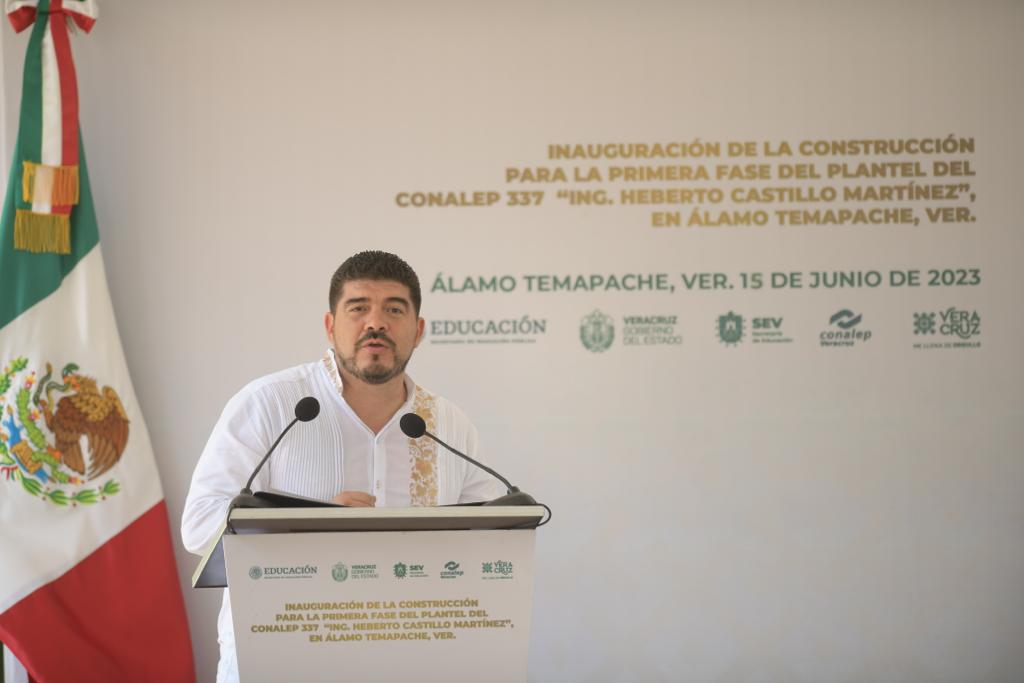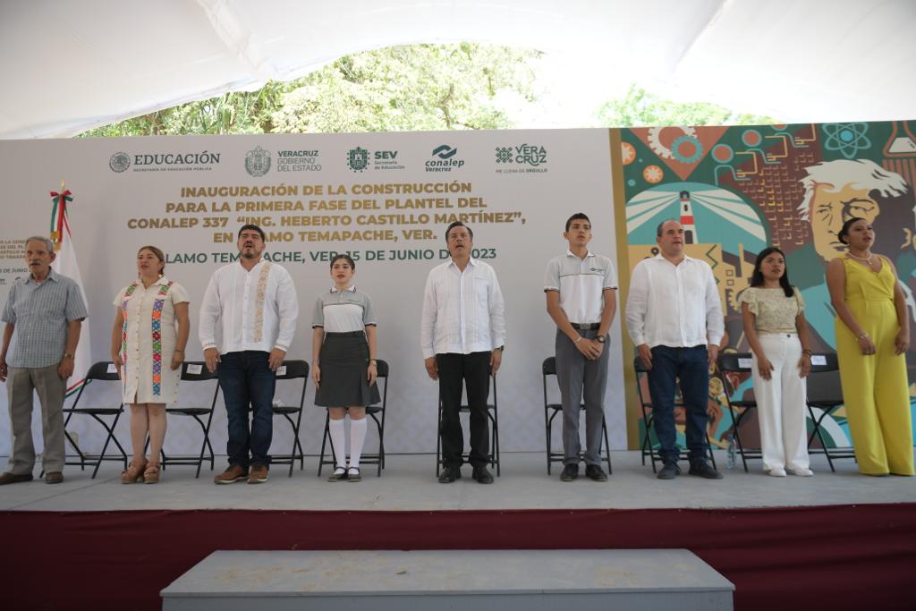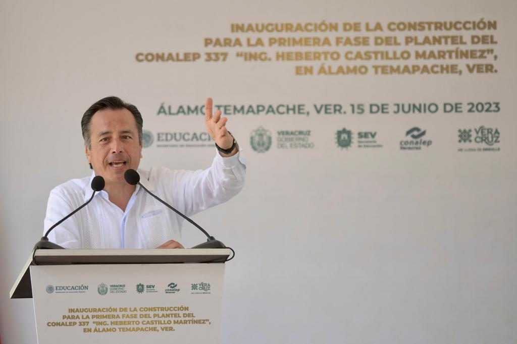 Álamo, Ver..- “Gracias a que en la historia hubo personas que entregaron su vida a la lucha por los derechos de todas y todos, hoy podemos construir escuelas y ofrecer a la juventud un lugar donde prepararse”, expresó el gobernador Cuitláhuac García Jiménez al inaugurar la primera etapa del Colegio Nacional de Educación Profesional Técnica (CONALEP) 337.