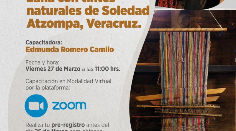 Será impartido de manera virtual por Edmunda Romero Camilo, a través de la plataforma Zoom, con el objetivo defortalecer y difundir las técnicas tradicionales del teñido natural de lana, preservar los saberes comunitarios y promover el valor cultural de la artesanía veracruzana como un elemento fundamental para el desarrollo turístico sostenible.