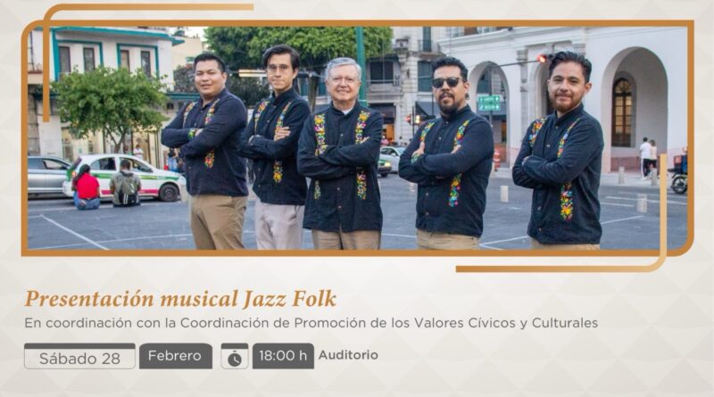 Xalapa, Ver., jueves 26 de febrero de 2026.- La Secretaría de Cultura de Veracruz, en colaboración con la Coordinación de Promoción de los Valores Cívicos y Culturales de la Secretaría de Gobierno, invita al concierto gratuito de la agrupación Jazz Folk, el sábado 28 a las 18:00 horas, en el Auditorio del Ágora de la Ciudad.