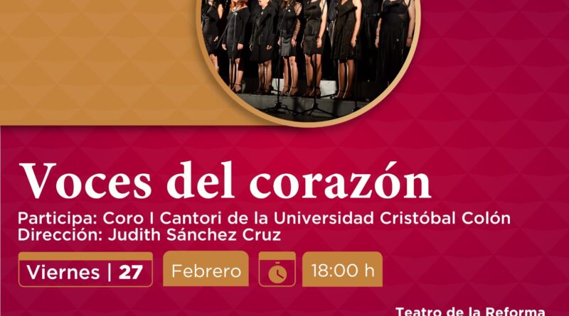 El evento estará a cargo de la agrupación Coro I Cantori de la Universidad Cristóbal Colón, bajo la dirección de la maestra Judith Sánchez Cruz. El programa incluye música popular y bel canto en compañía del pianista Juan Antonio Alcudia Arias. La entrada es gratuita.