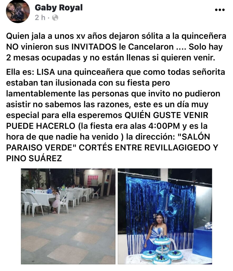 Fue por ello que su familia decidió hacer una invitación pública en redes sociales lo que se volvió viral y varias personas de la zona conurbada Veracruz- Boca del Río han arribado al salón donde se realiza el festejo.