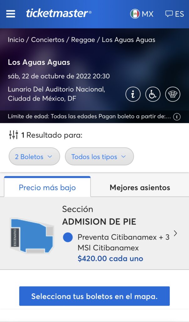 La preventa de los boletos es este 5 y 6 de julio en ticketmaster, el precio de pie es de 420 pesos.