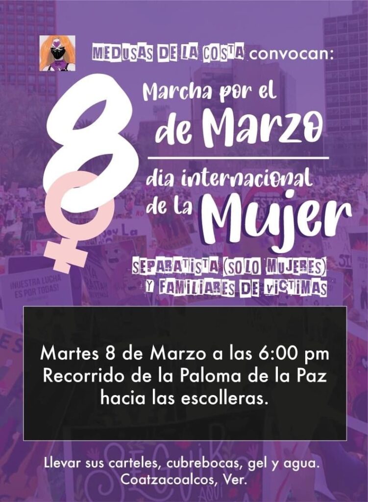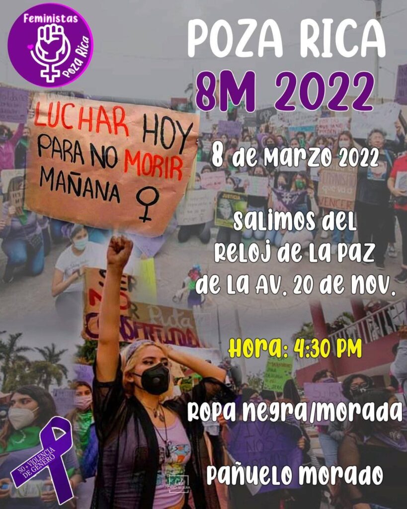 También hay un llamado a una concentración muy cerca, en la Plaza de la República 31, desde la 1 p.m. hora local. De allí se espera que la movilización vaya hasta el Zócalo capitalino. La convocatoria pide llevar prendas moradas o pañuelos o prendas amarillo fosforescentes.