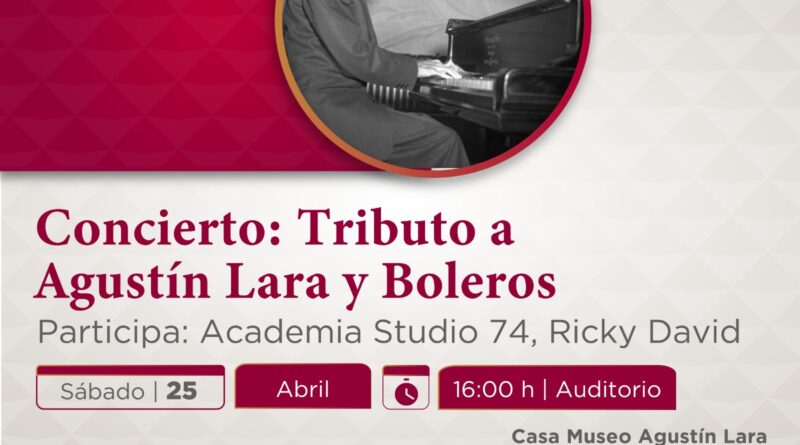 Xalapa. Ver., jueves 23 de abril de 2026.- La Secretaría de Cultura de Veracruz (SECVER) invita al concierto Tributo a Agustín Lara y al Bolero, que se realizará este próximo sábado, a las 17:00 horas, en el auditorio de la Casa Museo Agustín Lara, en Boca del Río. La entrada es gratuita.