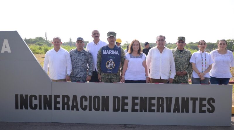 Veracruz, Ver., jueves 04 de septiembre de 2025.- La gobernadora Rocío Nahle García participó en la incineración de más de 366 kilogramos de enervantes, principalmente cocaína, marihuana y metanfetaminas.