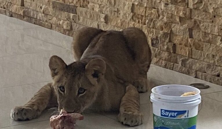 Personal de la Procuraduría se trasladó de manera inmediata al lugar y encontró un león africano (Panthera leo) hembra, de aproximadamente 6 meses.