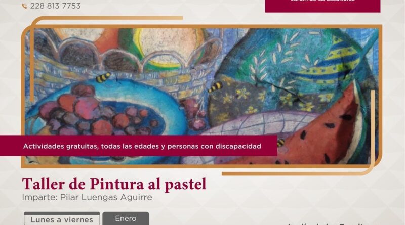 En el JEX se impartirá el taller Pintura al pastel todos los lunes de enero en dos horarios: de 10:00 a 12:00 y de 12:00 a 14:00 horas, así como los martes de 16:00 a 18:00 horas. El taller Pintura al óleo se realizará los miércoles en tres horarios: de 10:00 a 12:00, de 12:00 a 14:00 y de 16:00 a 18:00 horas, además de los viernes de 16:00 a 18:00 horas. Por su parte, el taller Tejido en lana natural se llevará a cabo los jueves de 10:00 a 12:00, de 12:00 a 14:00 y de 16:00 a 18:00 horas, así como los viernes de 10:00 a 12:00 y de 12:00 a 14:00 horas.
