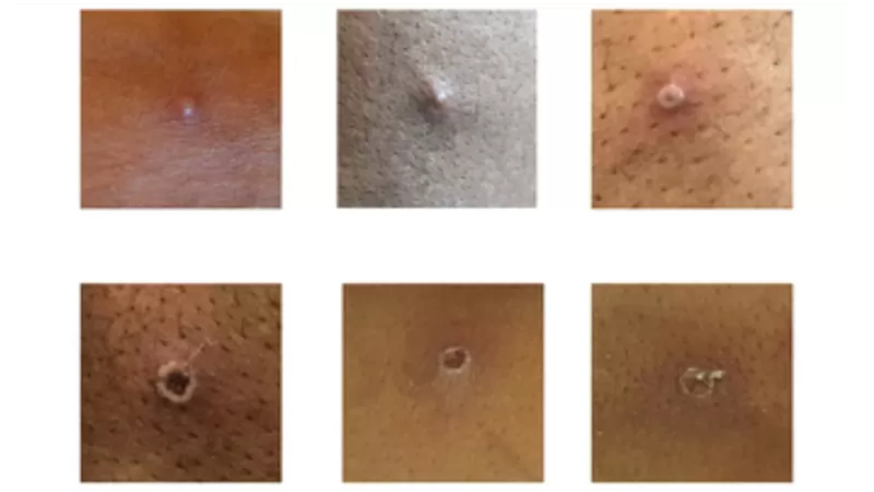 “Primero aparecen lo que llamamos máculas. Estas son solo áreas rojas. Luego progresa a pápulas. Esto ya es algo que se puede sentir porque tiene relieve”.