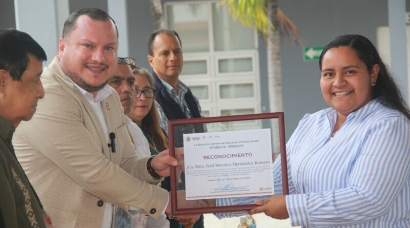 Soledad de Doblado, Ver., jueves 05 de febrero de 2026.- La Secretaría de Educación de Veracruz (SEV), a través de la Dirección General de Educación Primaria Estatal, otorgó un reconocimiento a la maestra Itzel Berenice Hernández Romero, adscrita a la Escuela Primaria Guillermo Prieto, ubicada en la localidad de Los Teteles, por su destacada participación en el podcast Voces del Territorio.