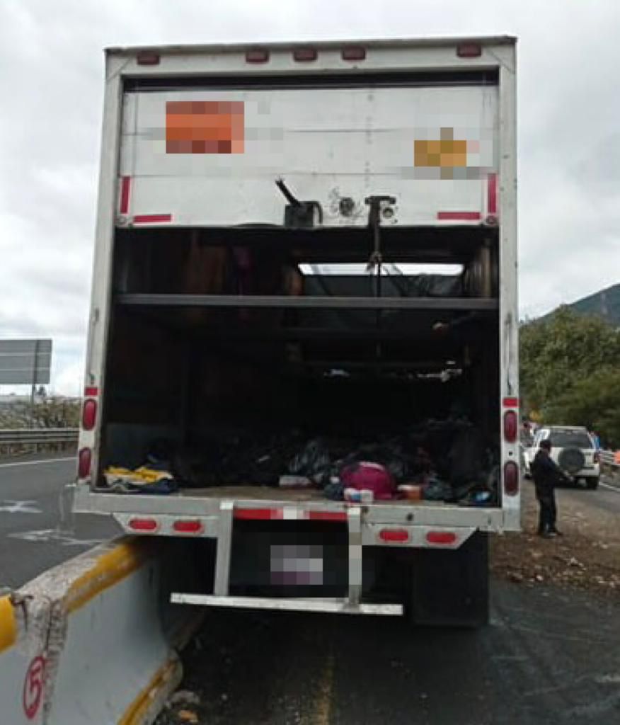 Luego de que un camión marca Kenwhort, placas 64AN8T, con razón social empresa Diconsa se impactara contra un muro de contención en la citada carretera, el cual llevaba a bordo a las personas migrantes, éstas salieron de la unidad y fueron atendidas por los efectivos estatales.