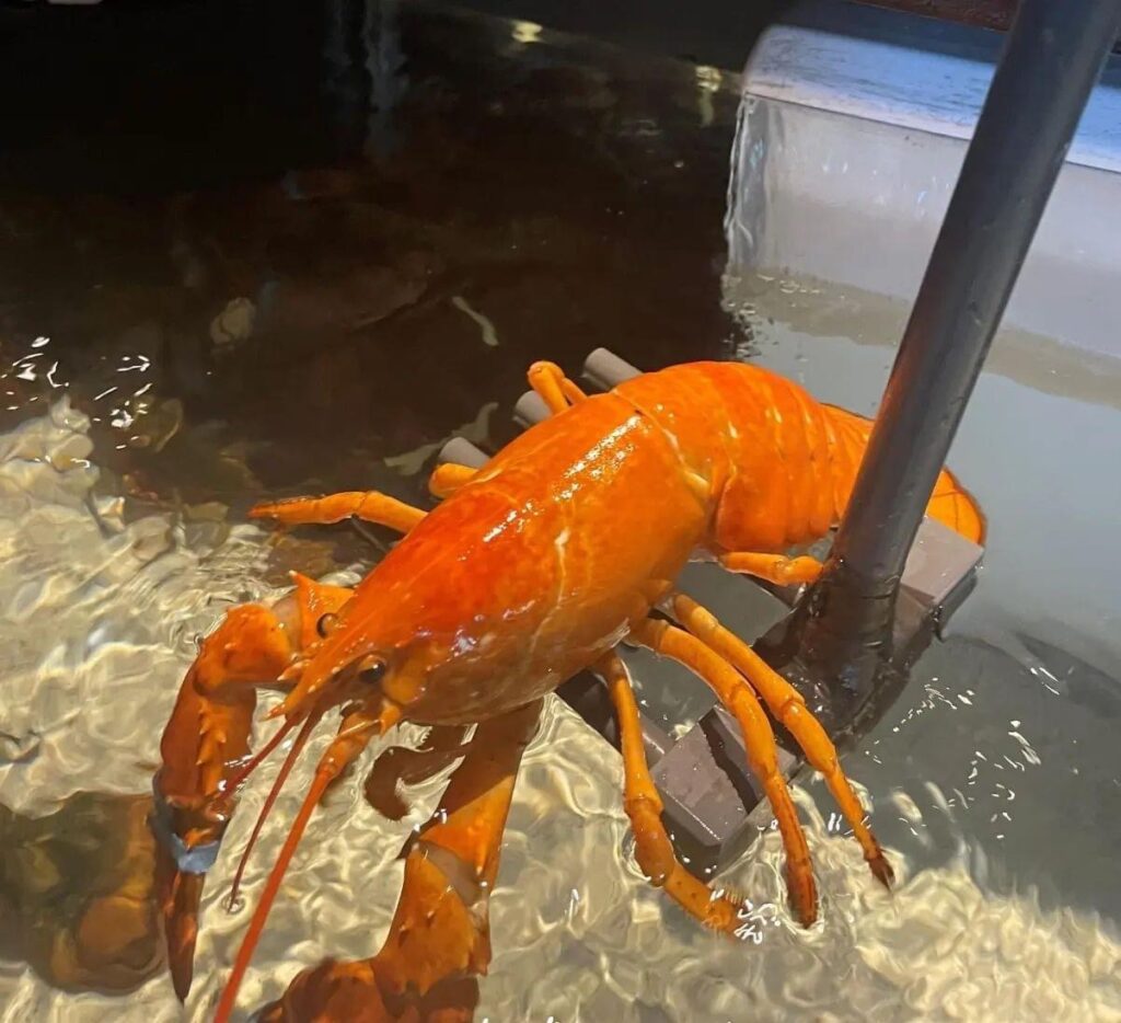 El crustáceo de color naranja es una rareza de la naturaleza que se da solo una vez en 30 millones de langostas, según el Ripley’s Aquarium de Myrtle Beach, en Carolina del Sur, donde ahora vive.
