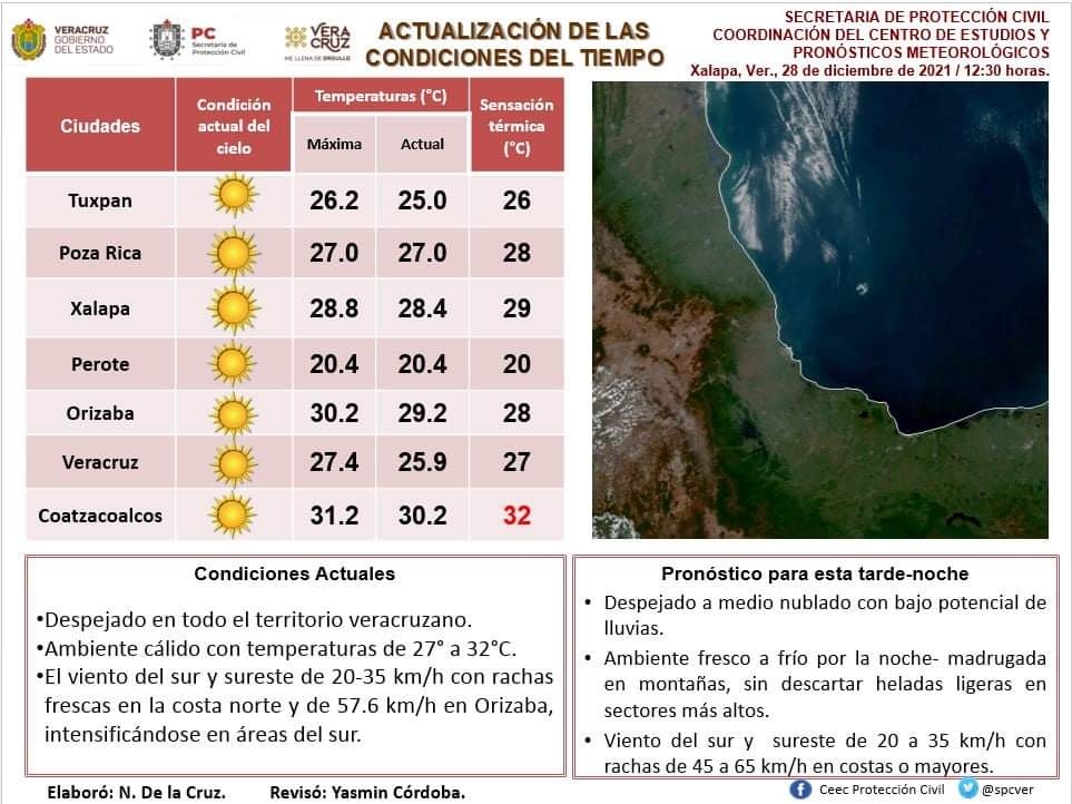 Xalapa, Ver.- En las próximas horas se prevé un evento de surada que podría alcanzar rachas frescas a fuertes en varios puntos de la entidad, lo cual apoyaría un ambiente caluroso y seco, siendo propicio para incendios forestales, pastizales y basureros, informó la Secretaría de Protección Civil.