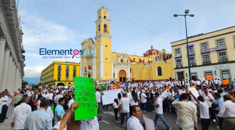 Xalapa, Ver.- Al grito de “Queremos a Rocío y tarifas justas”, cientos de taxistas de distintas regiones de Veracruz se manifestaron este lunes en Plaza Lerdo.