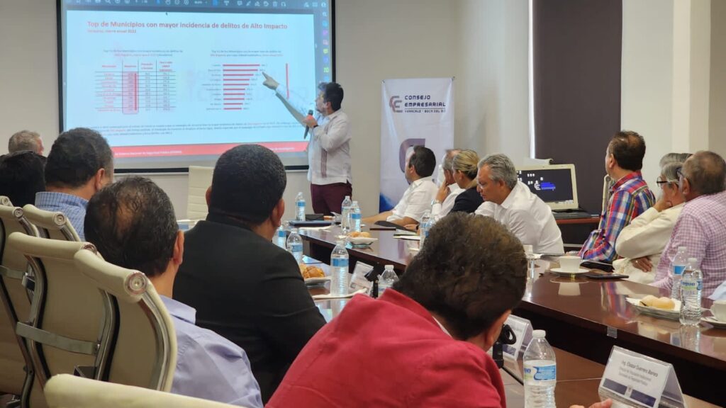 Veracruz, Ver.- El Secretario de Seguridad Pública (SSP), Cuauhtémoc Zúñiga Bonilla, encabezó una reunión con integrantes del sector empresarial y organismos camarales en la zona conurbada Veracruz-Boca del Río, donde destacó las estrategias que han implementado en dicha conurbación, los cuales han permitido registrar una disminución en los delitos de alto impacto.
