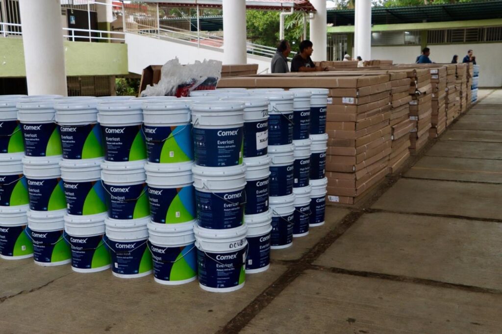 En los dos últimos días, derivado de la estrategia Transformando la Educación se distribuyeron mil 168 sillas, 584 mesas trapezoidales, 629 pizarrones y 766 pantallas de 55 pulgadas, además de dos mil 052 cubetas de pintura, 994 de impermeabilizante y 980 brochas y rodillos, con el objetivo de dignificar los espacios escolares.