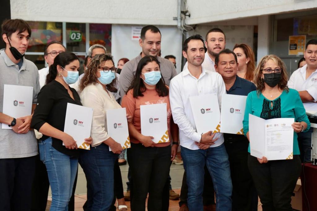 Xalapa, Ver.- En un acto de justicia social, el secretario de Educación de Veracruz, Zenyazen Escobar García, entregó ordenes de presentación a 328 maestras y maestros federales de 2 mil 934 horas, como parte del proceso de promoción a horas adicionales en Educación Básica ciclo escolar 2021-2022. Anteriores administraciones quedaron a deber este proceso a pesar de la labor de las y los docentes que aun así siguieron trabajando por la población estudiantil.